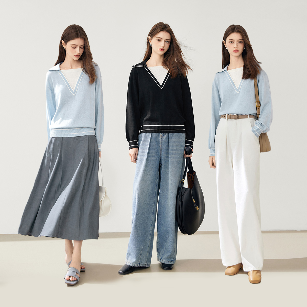 修身 针织衫 2025新款 妖精 薄款 绵羊毛 早秋穿搭打底衫 上衣 口袋
