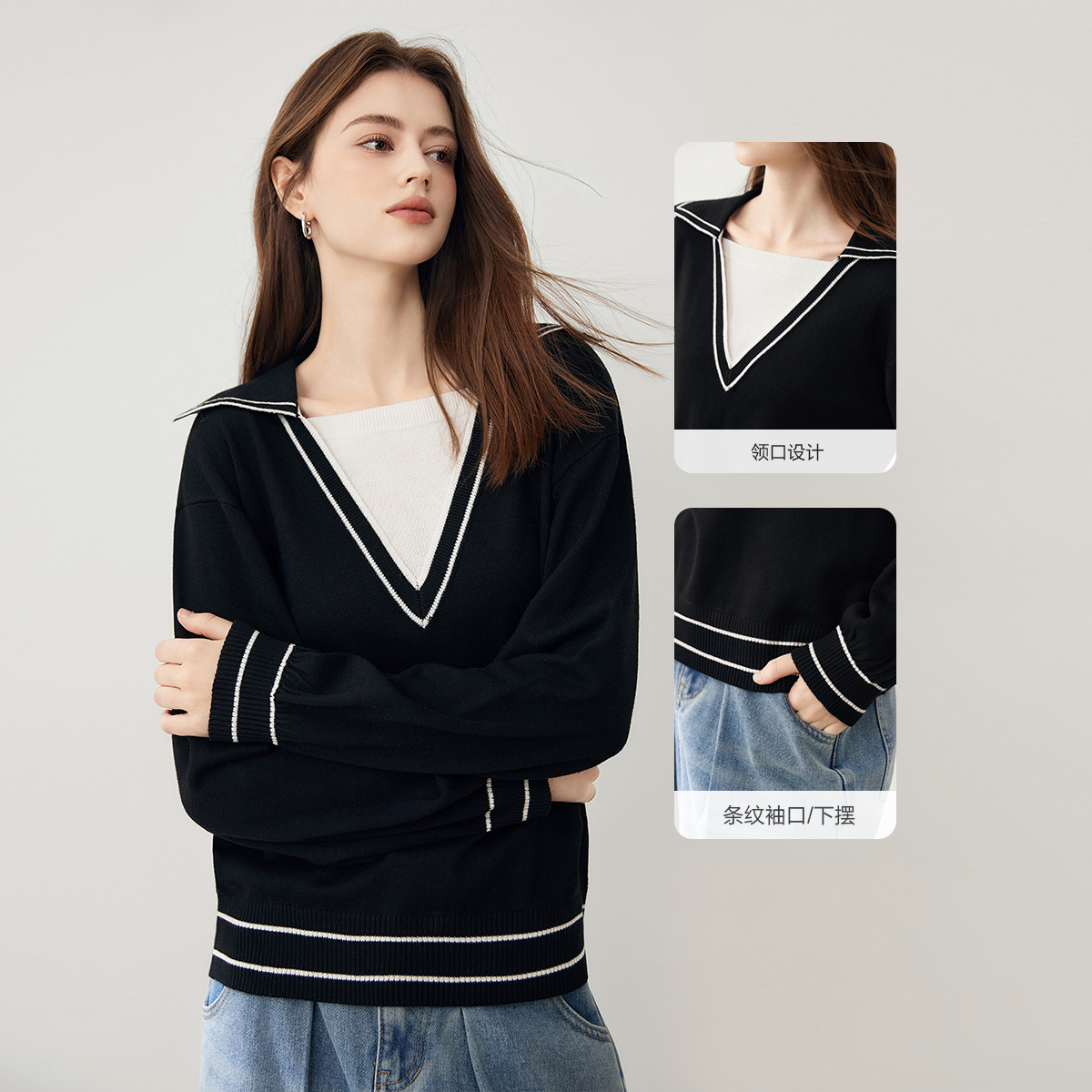 内搭上衣 高级感独特气质修身 韩系学院风v领针织衫 毛衣女秋冬新款