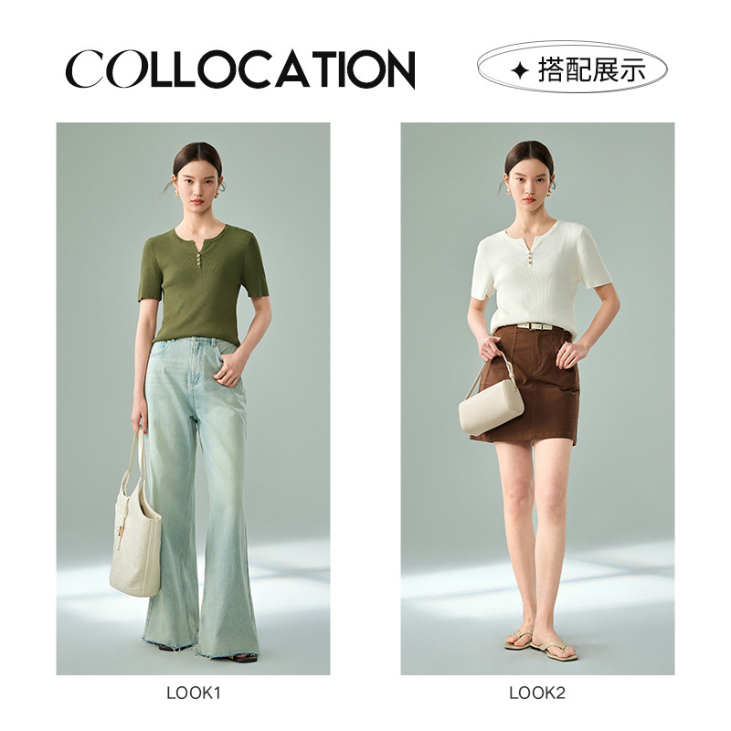 淑女米色毛衫 女MOFAN摩凡2025夏新款 显瘦 针织衫 优雅水滴领修身