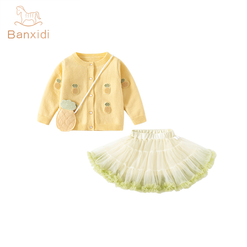 外套春秋两件套儿童裙子 洋气女宝宝公主裙开衫 班喜迪女童套装 秋装