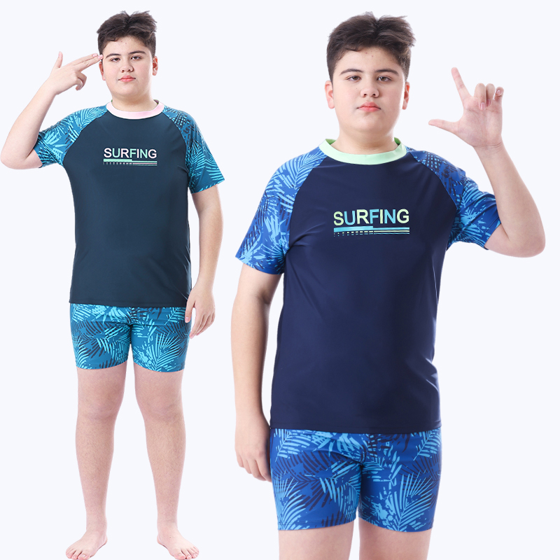 儿童泳衣2025春季 游泳衣游泳套装 新款 短裤 胖童男孩儿分体短袖 大码