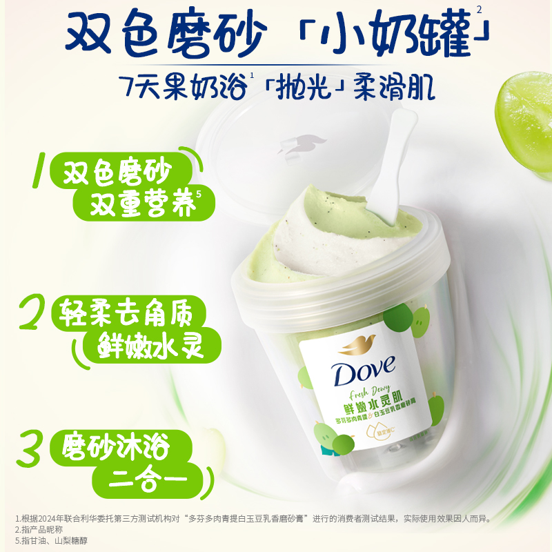 多芬青提果奶双色磨砂膏滋润滋润轻松去角质 Dove 孙颖莎同款