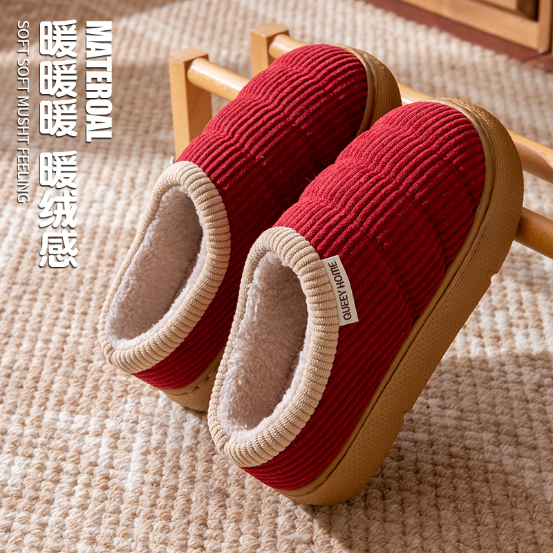 室内家居保暖毛绒厚底防滑舒适静音棉拖男 女士冬季 2025新款 老人鞋