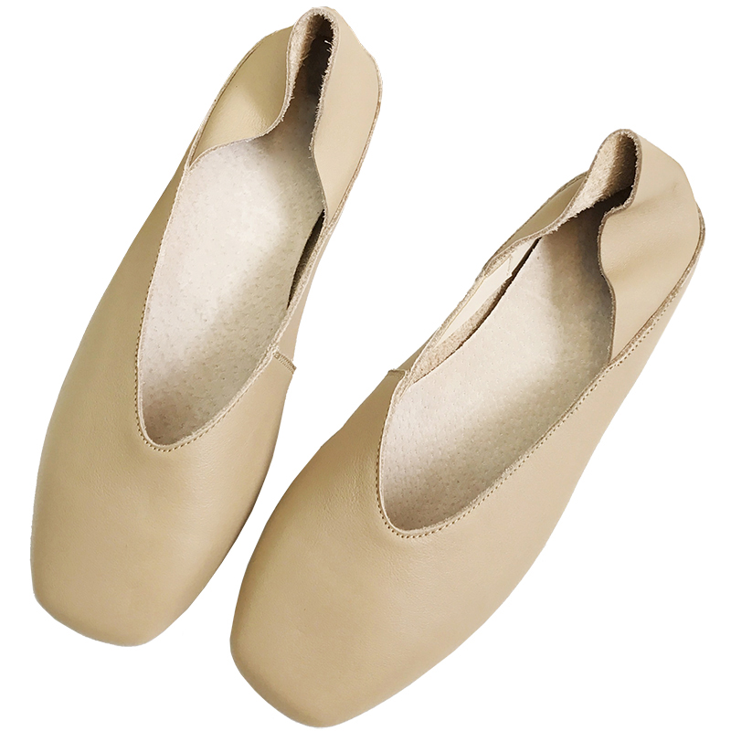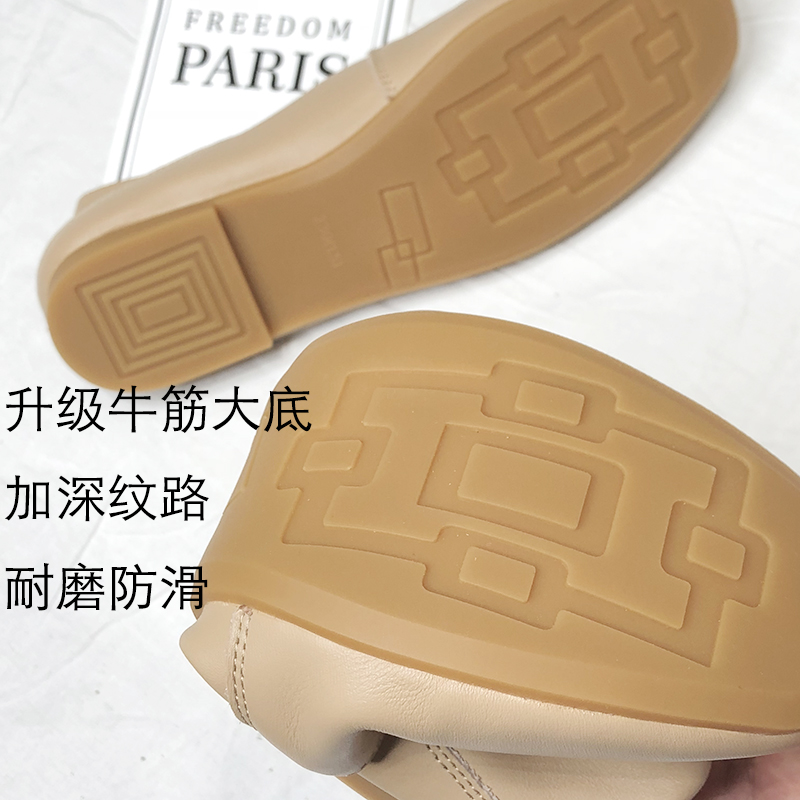 两穿一脚蹬平底奶奶鞋 2024春夏新款 百搭方头女鞋 真皮浅口单鞋 韩版