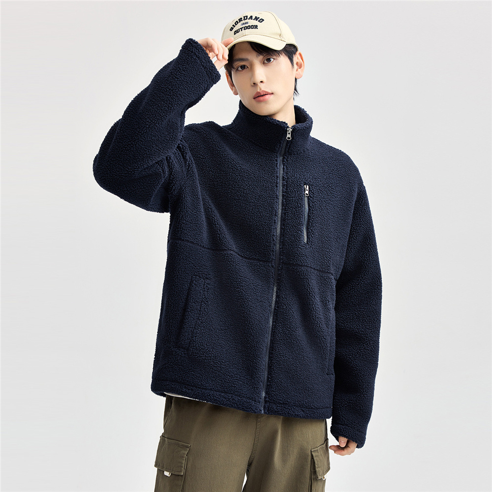佐丹奴外套男装 01074860 仿羊羔绒破骨多口袋立领针织休闲外套