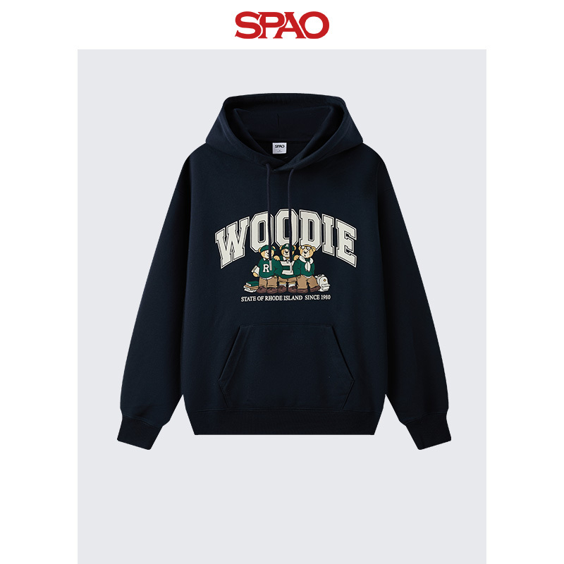 25年春秋情侣款 SPAO韩国同款 小熊连帽卫衣 WOODIE系列