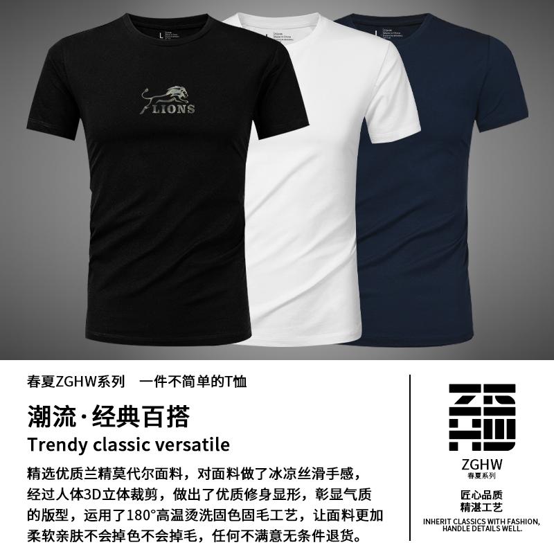 印花体恤圆领白色上衣 凉感速干半袖 ZGHW莫代尔冰丝t恤男短袖 夏季