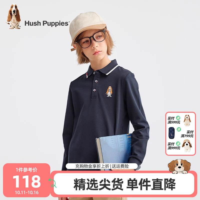 春秋新款 Polo衫 大童休闲翻领t恤儿童舒适上衣 男童长袖 暇步士童装