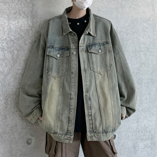 夹克上衣 潮牌美式 李一桐同款 INXXAPYD复古做旧牛仔外套男女同款