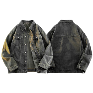 新款 复古潮流外套薄款 牛仔衣夹克男士 高街潮牌工装 黑色 美式 春秋季