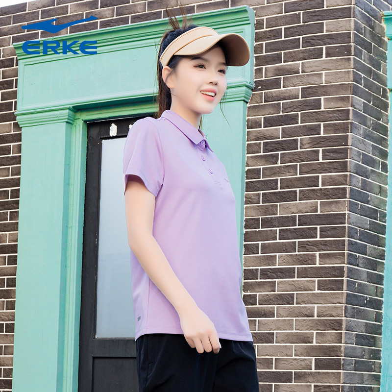 t恤女冰丝速干衣秋季 鸿星尔克女装 翻领短袖 运动服POLO衫 2025新款