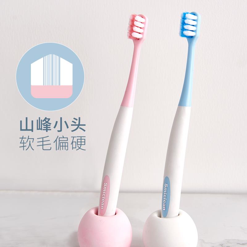 牙刷排行榜第一名小头情侣成人家用牙刷偏硬软毛小山峰护龈去渍正
