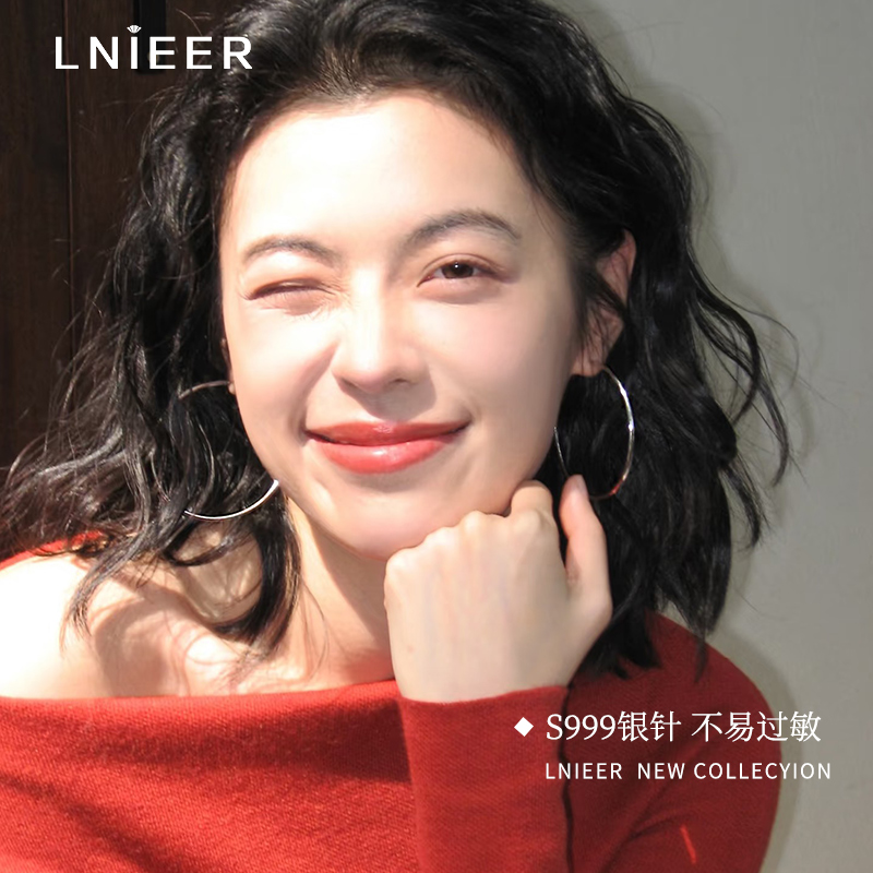 S999纯银针素圈耳环大圆圈女经典 轻奢耳饰 百搭高级感耳钉2025爆款