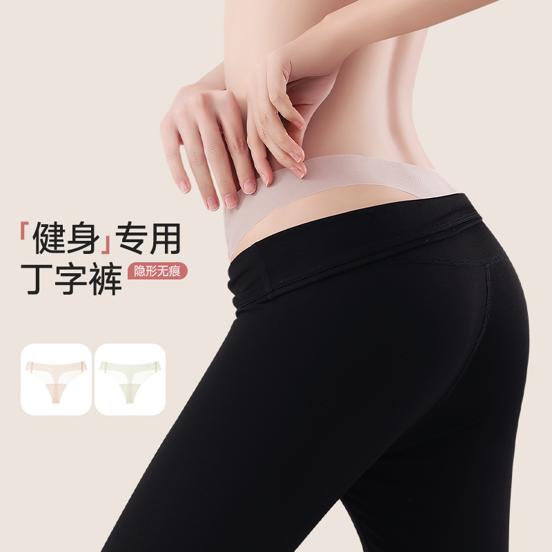 瑜伽健身运动隐形不夹臀防尴尬线短裤 女士丁字裤 性感无痕冰丝内裤