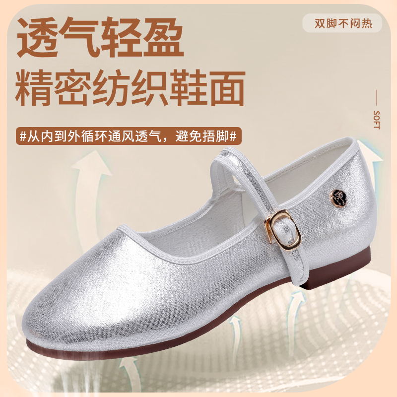 室外软底不累脚水兵舞鞋 女成人古典舞平底广场舞鞋 银色舞蹈鞋 新款