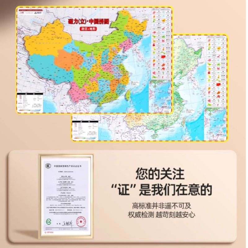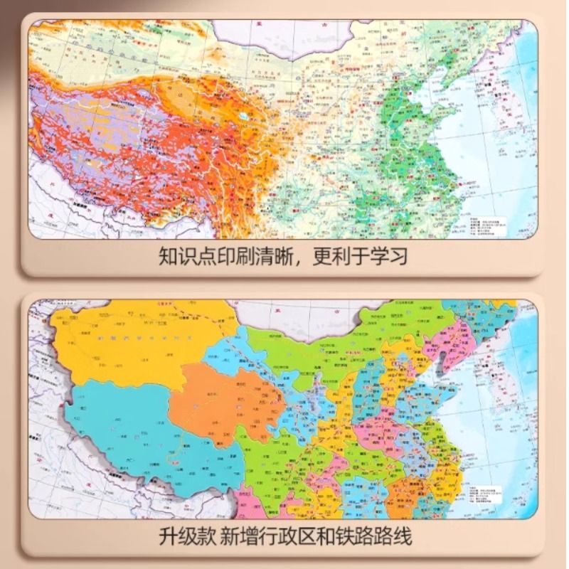 中国地图拼图磁力2025新版 初中生专用世界3d立体儿童大号行政高清