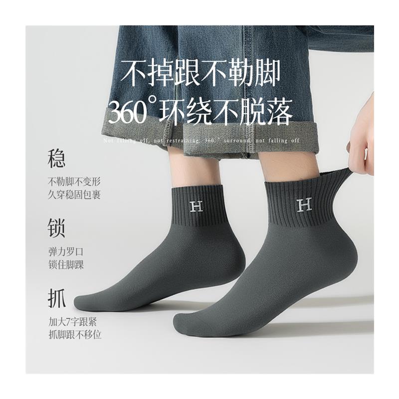 棉伙棉伴海藻袜舒适抗菌防臭男女商务运动纯色裸感中筒袜