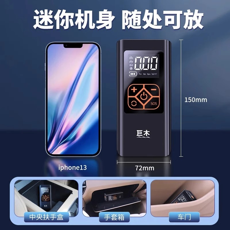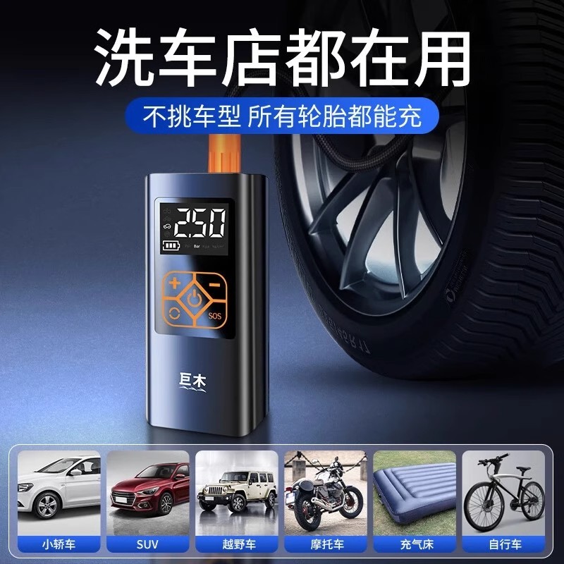巨木车载无线充气泵便携式 电动打气筒汽车轮胎自动补气充气宝加气