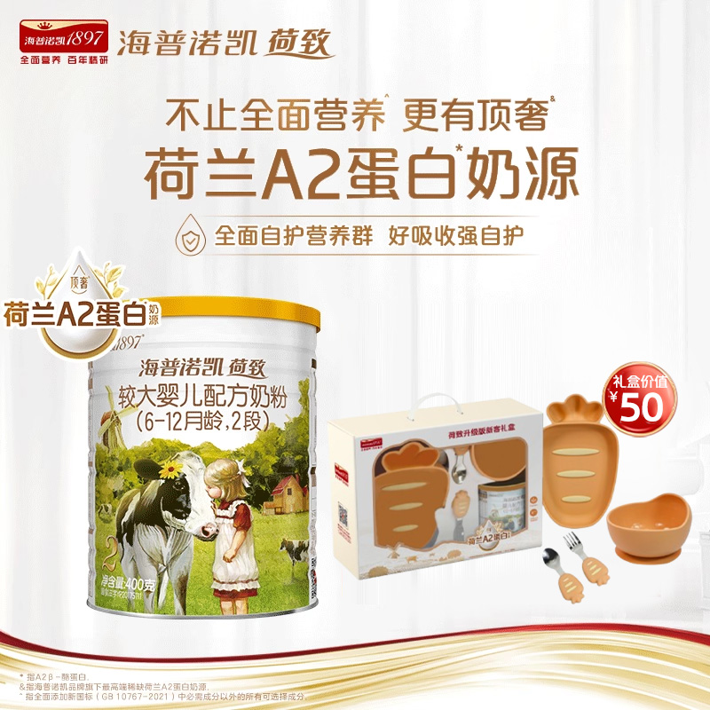 妈妈营专属 奶源婴幼儿奶粉2段400g礼盒 海普诺凯1897荷致A2蛋白