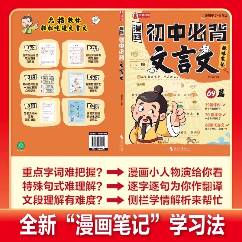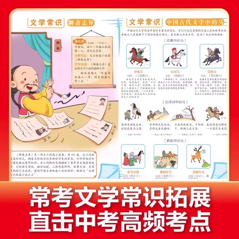 七八九年级衔接中考文学文化常识开心初一二三必备 初中文言文全解2025人教版 抖音同款 初中必背古诗词和文言文漫画笔记趣味漫画版