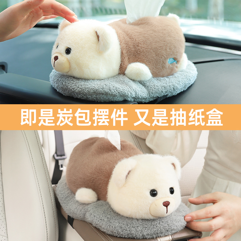 车载摆件中控台车内装 饰品汽车除甲醛新车去异味活性竹炭包纸巾盒