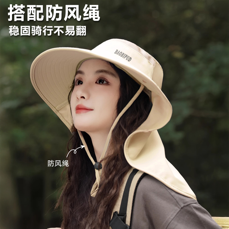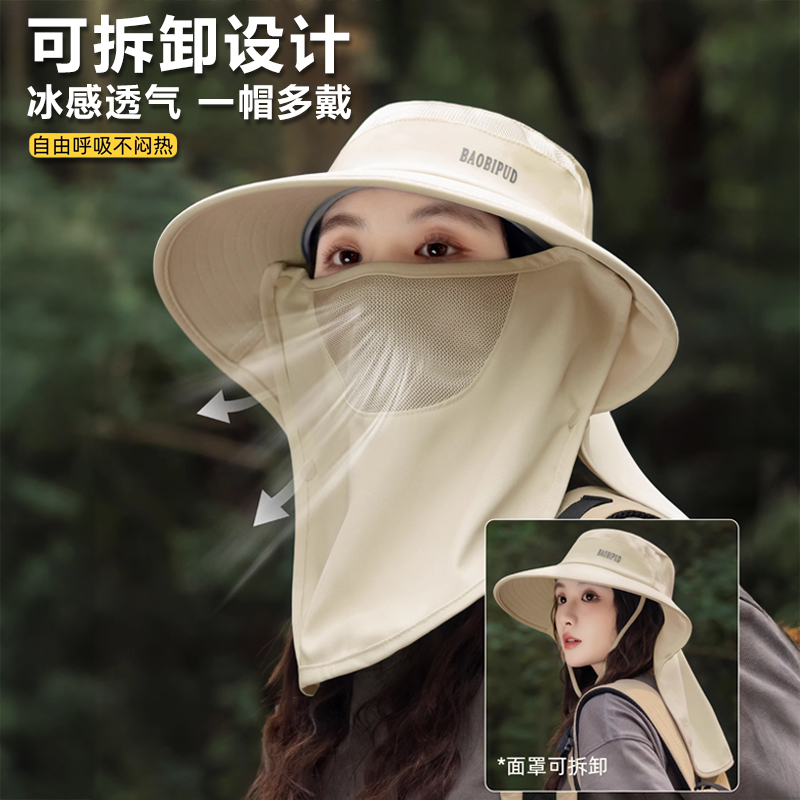 遮阳帽女防晒防紫外线夏季 面罩护颈帽子一体太阳帽大帽檐透气骑行