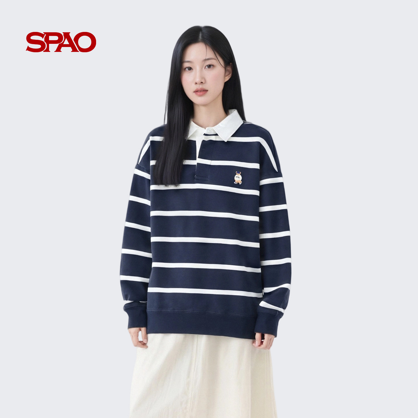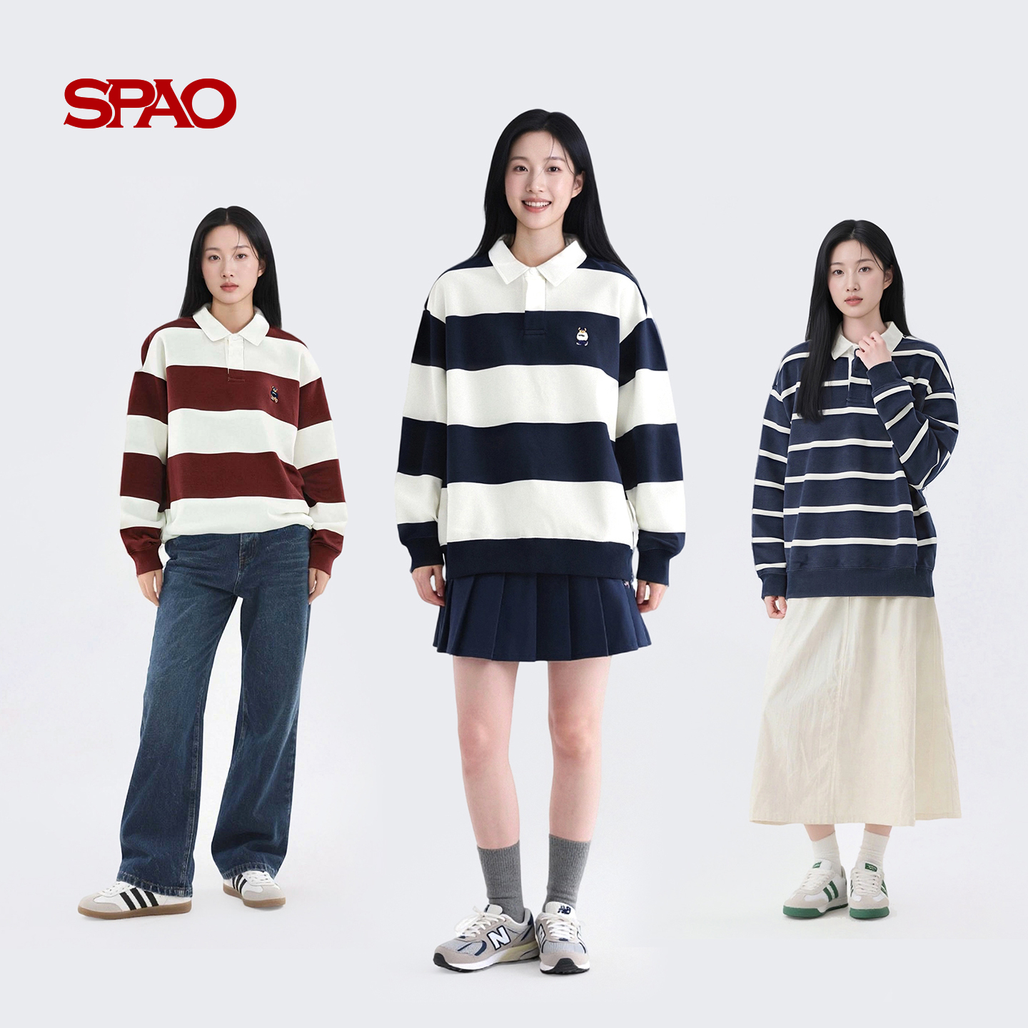 上衣女装 宽松格子拼接连帽开衫 504407 秋季 三福卫衣外套女2025新款