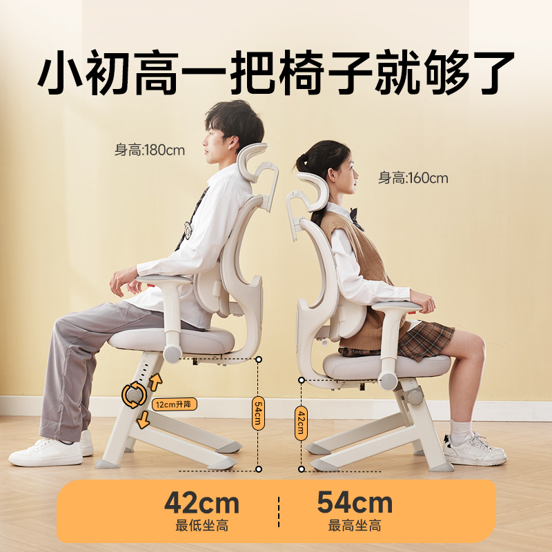 习格追背学习椅子青少年写字椅初高中学生书桌椅家用久坐凳子舒适