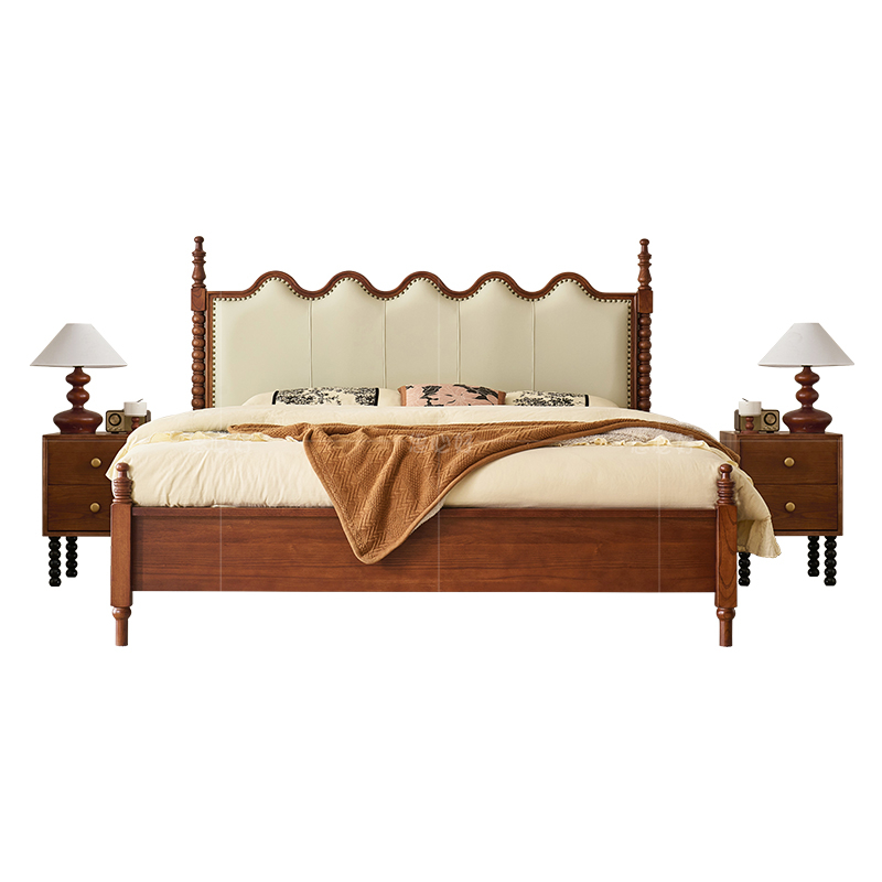 思必好法式 复古软包床 中古风床白蜡木实木1米8双人床卧室大床美式