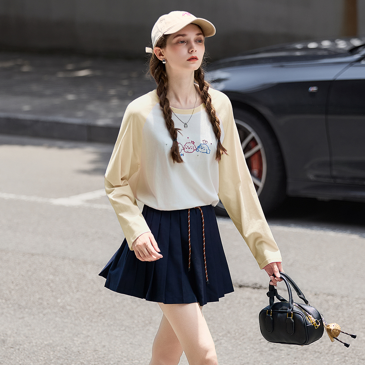 双11预售 T恤女撞色插肩袖 唐狮2025秋季 长袖 可爱小狗学生宽 新款