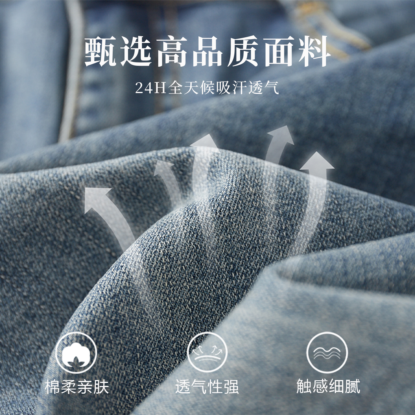 牛仔裤 子透气舒适弹力款 男夏季 宽松直筒五分裤 新款 莱赛尔天丝薄款