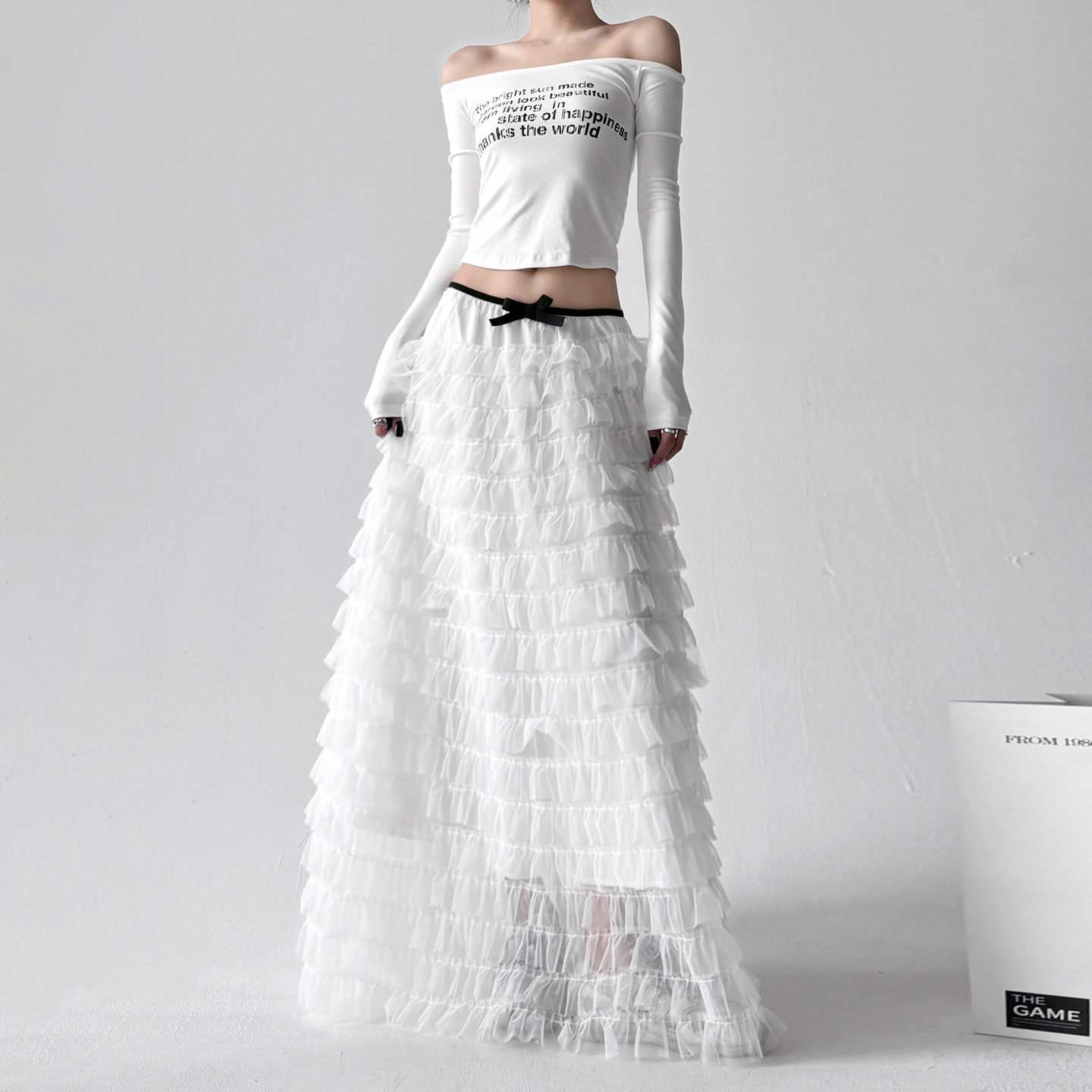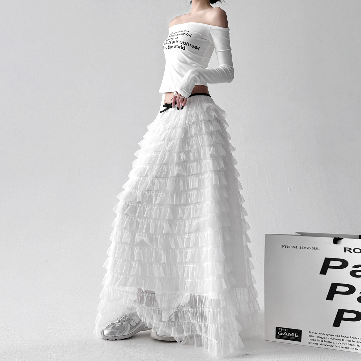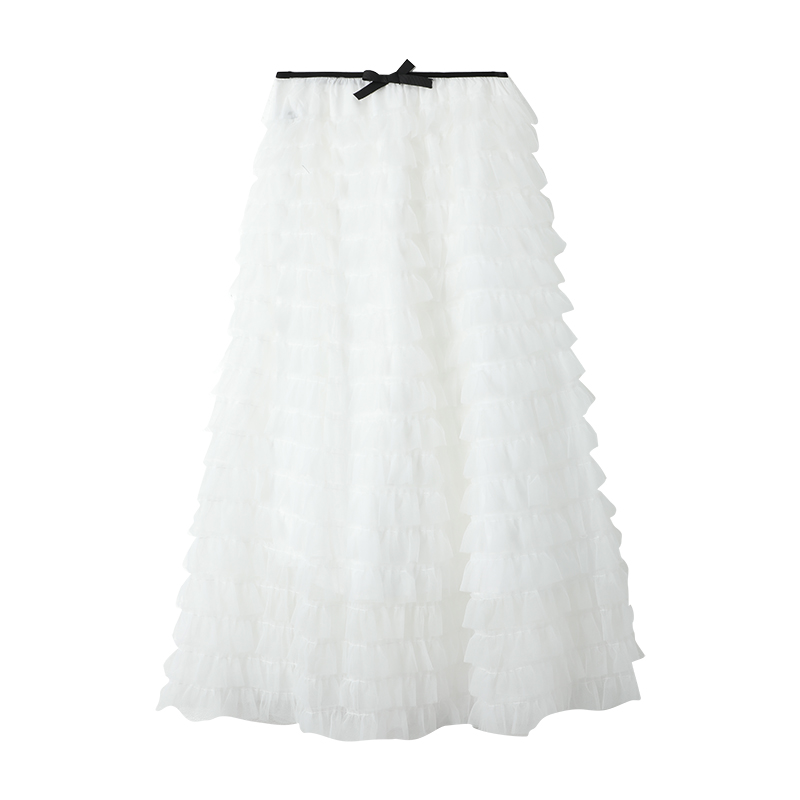 甜美风蝴蝶结多层网纱蓬蓬半身裙女2025中长款 白色仙女蛋糕裙