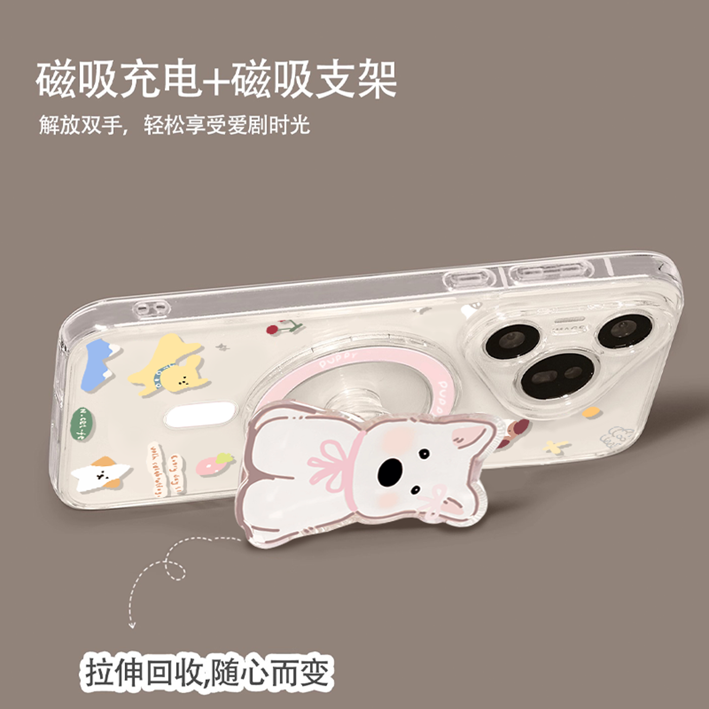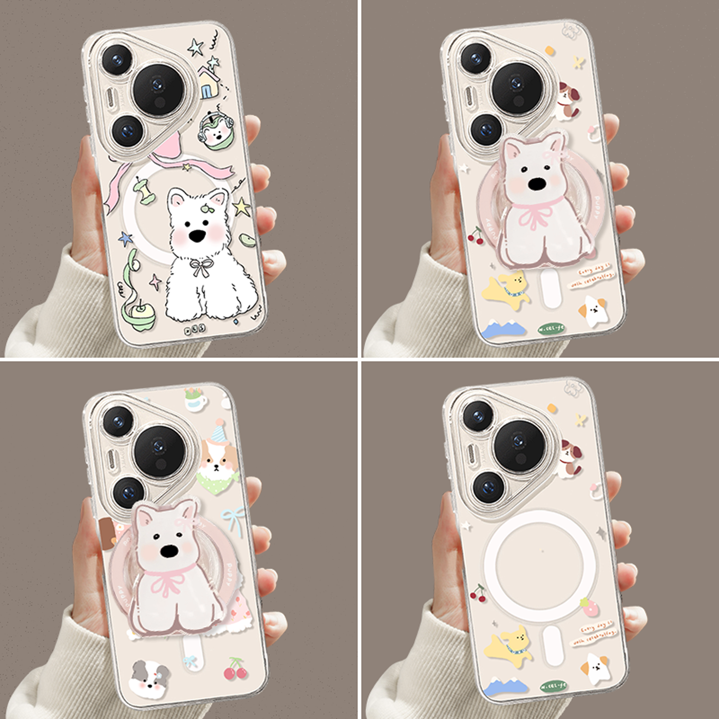 磁吸透明壳适用于华为pura70pro 手机壳女生p70高级创意p70ultra镜头防摔PURA80PRO支架保护套西高地小狗 新款
