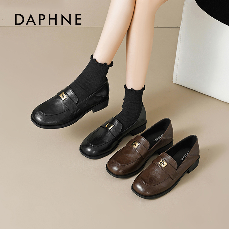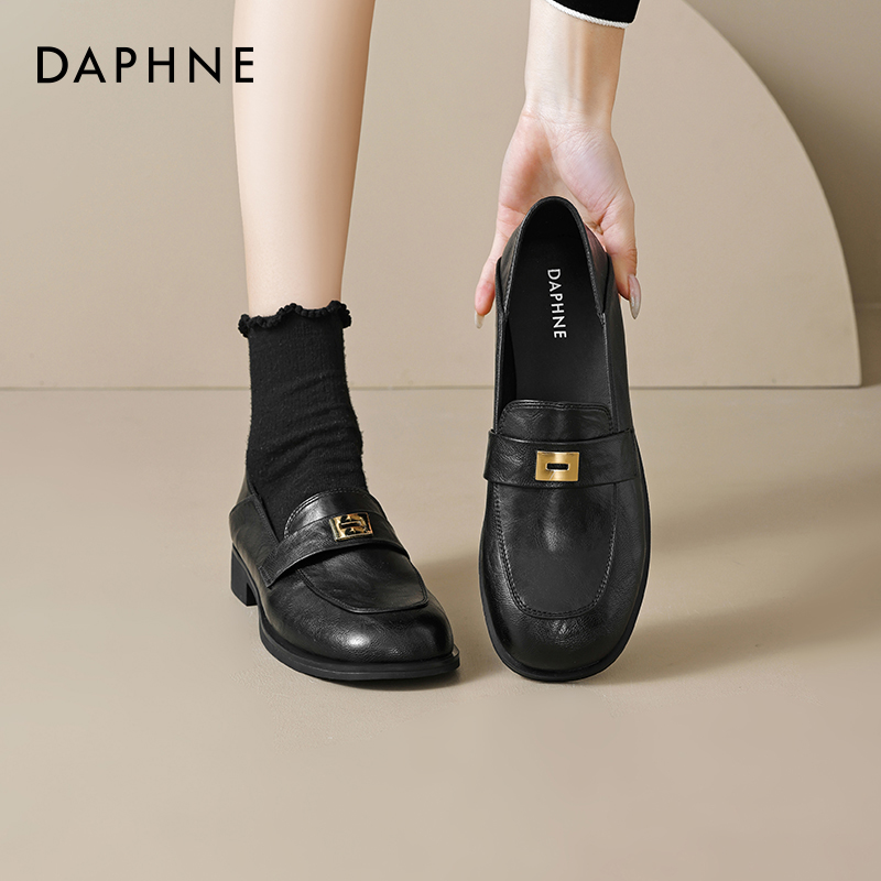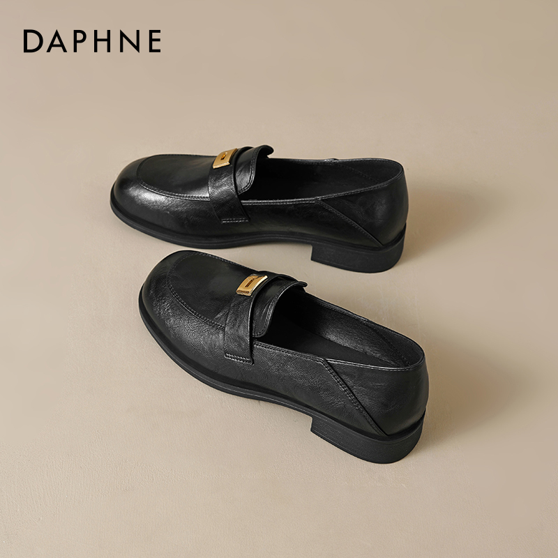 一脚蹬小皮鞋 达芙妮黑色乐福鞋 通勤软底复古jk单鞋 夏季 女2025新款