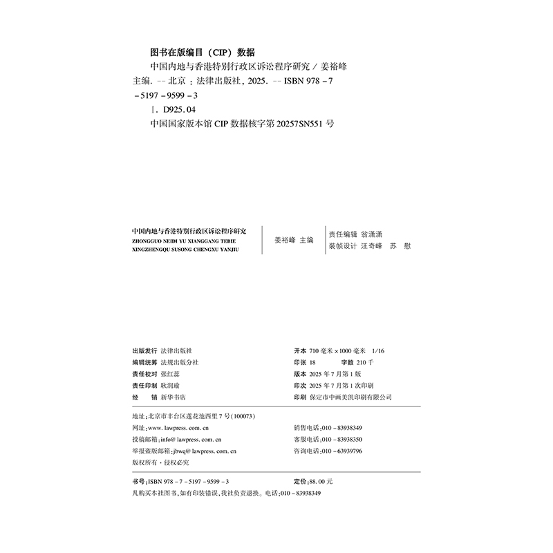 刘静坤 刘晓华 张玉环副主编 2025新 社 姜裕峰主编 法律出版 9787519795993 中国内地与香港特别行政区诉讼程序研究