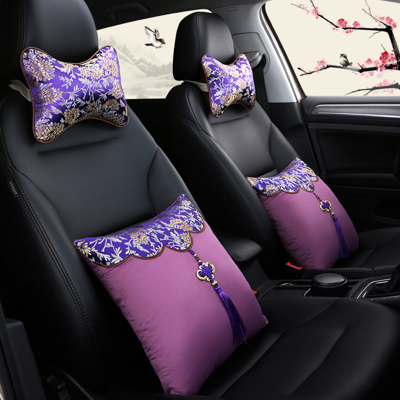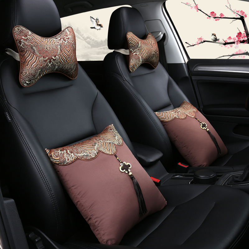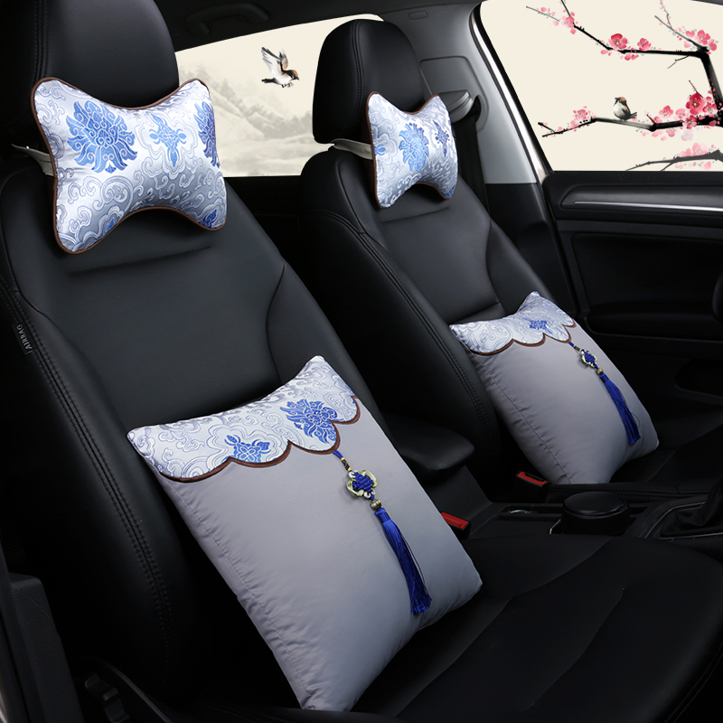 颈枕一对靠枕 头枕四件套腰靠车用套装 汽车抱枕麻布中国风时尚 新款
