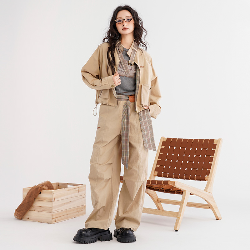 防泼水 休闲长裤 骆驼运动工装 女秋季 户外宽松直筒徒步登山裤 裤