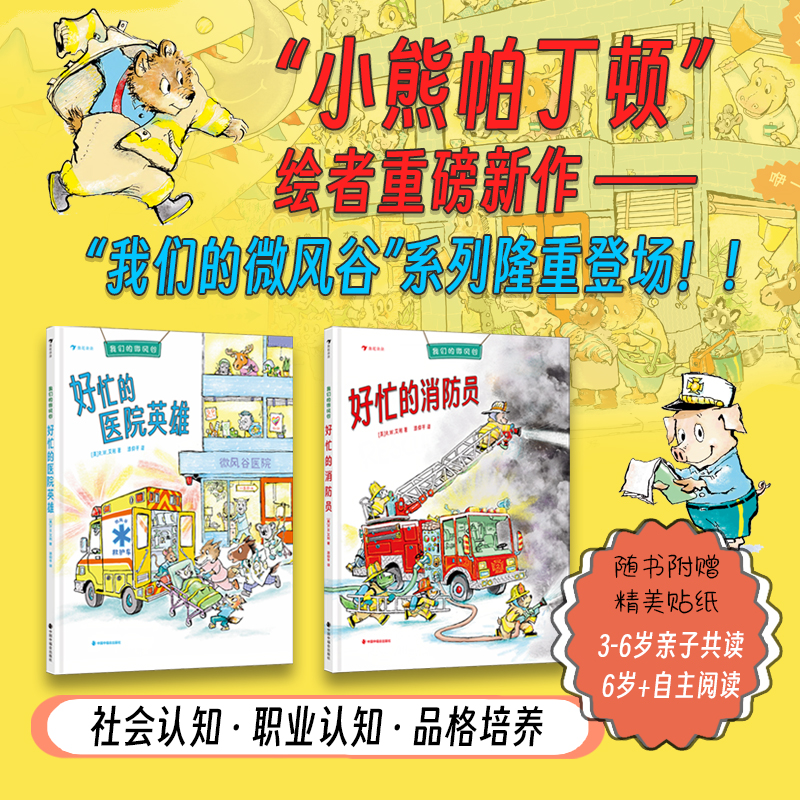 儿童绘本故事图画书 微风谷 医院英雄 消防员 好忙 我们 全2册 少儿漫画书 小熊帕丁顿绘者重磅新作 央视网赠贴纸