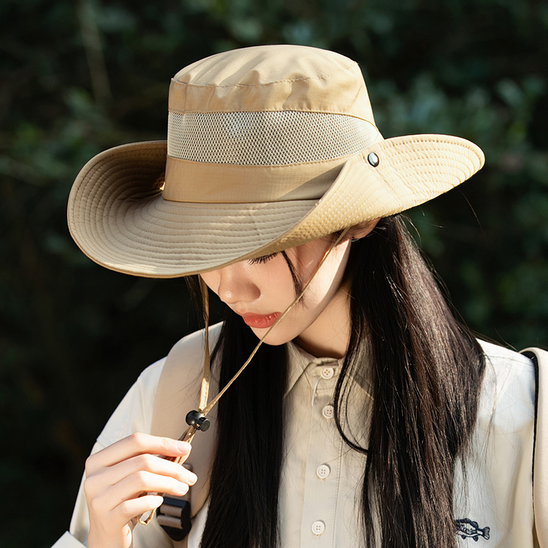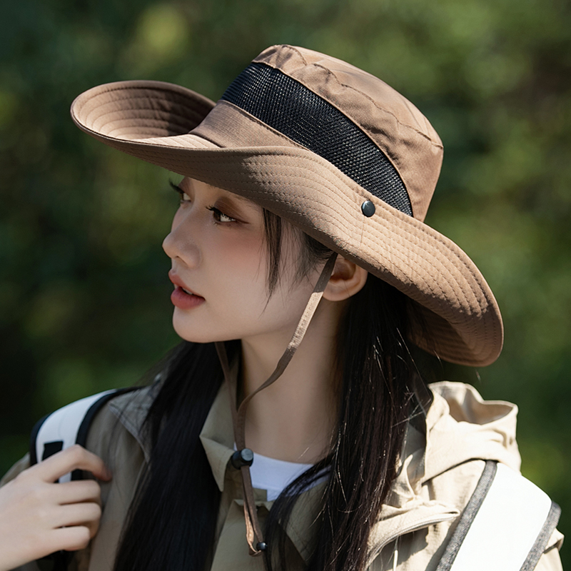 西部牛仔帽子女徒步户外登山帽大帽檐遮阳防晒防紫外线渔夫帽防风