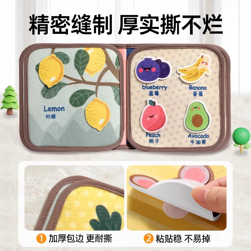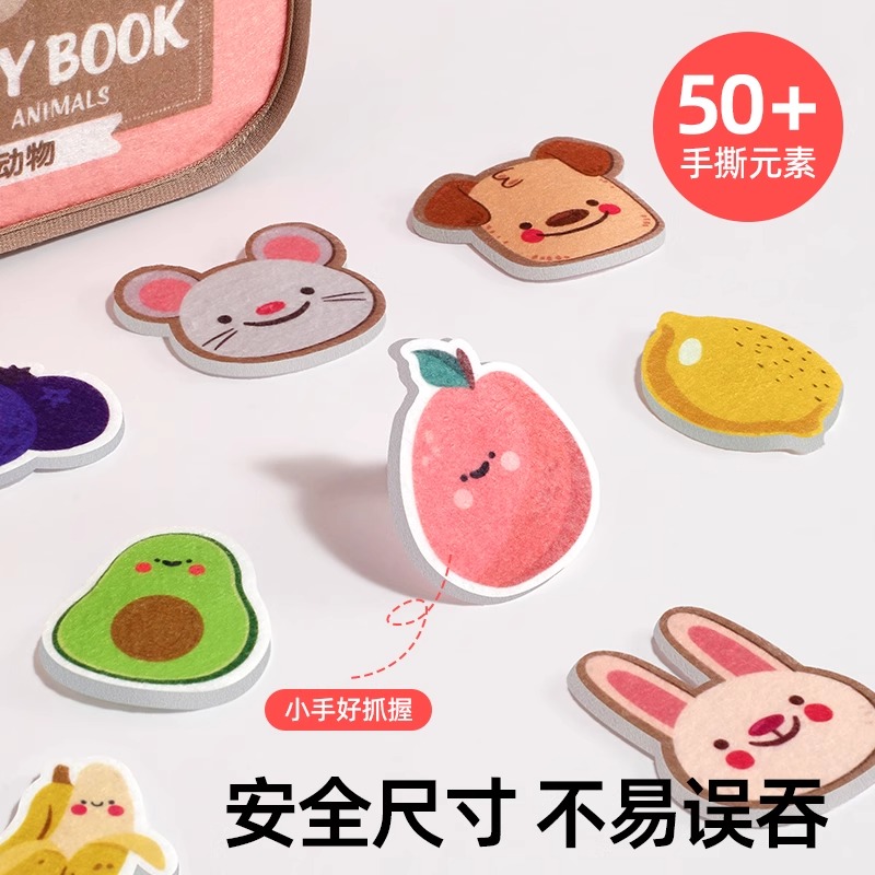 艾蒙岛安静撕撕书婴儿贴纸早教魔术贴忙碌书宝宝手撕布书粘贴玩具