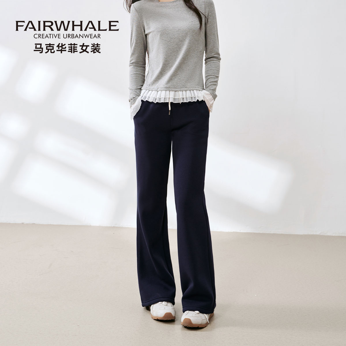 高腰垂感显瘦马蹄卫裤 马克华菲灰色微喇运动休闲裤 女春秋2025新款