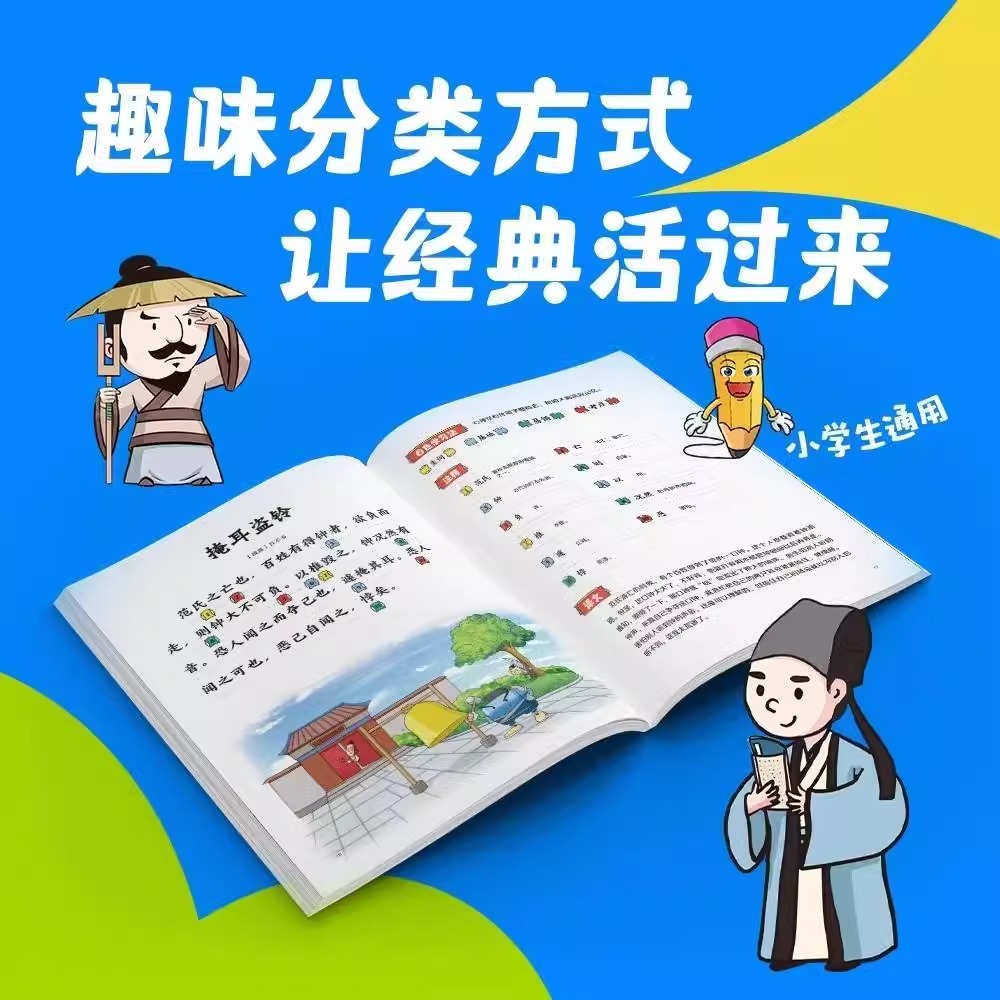 一二三年级四五六年级课本必背古诗词小古文故事 小学生人教版 趣味版 四色学习标记法小古文夯实语文基本功分清重难点