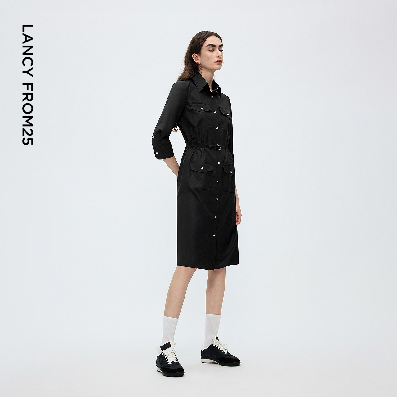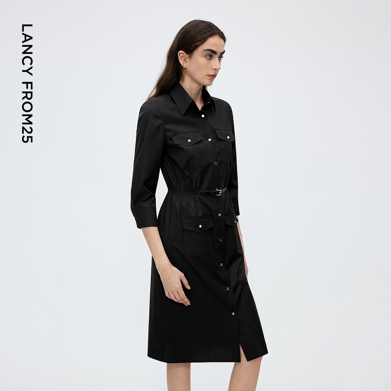 新款 通勤轻职场小黑裙气质2025年秋季 连衣裙法式 朗姿收腰a字衬衫