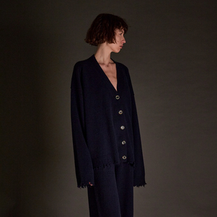 UMA 复古长袖 WANG 2025秋冬新款 单排扣毛边开襟衫 hug