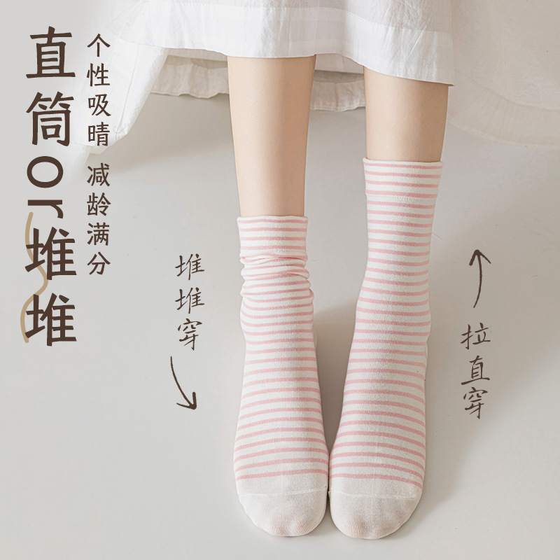 月子袜子女夏薄款 纯棉中筒袜产妇孕妇做月子宽松口条纹堆堆袜春秋