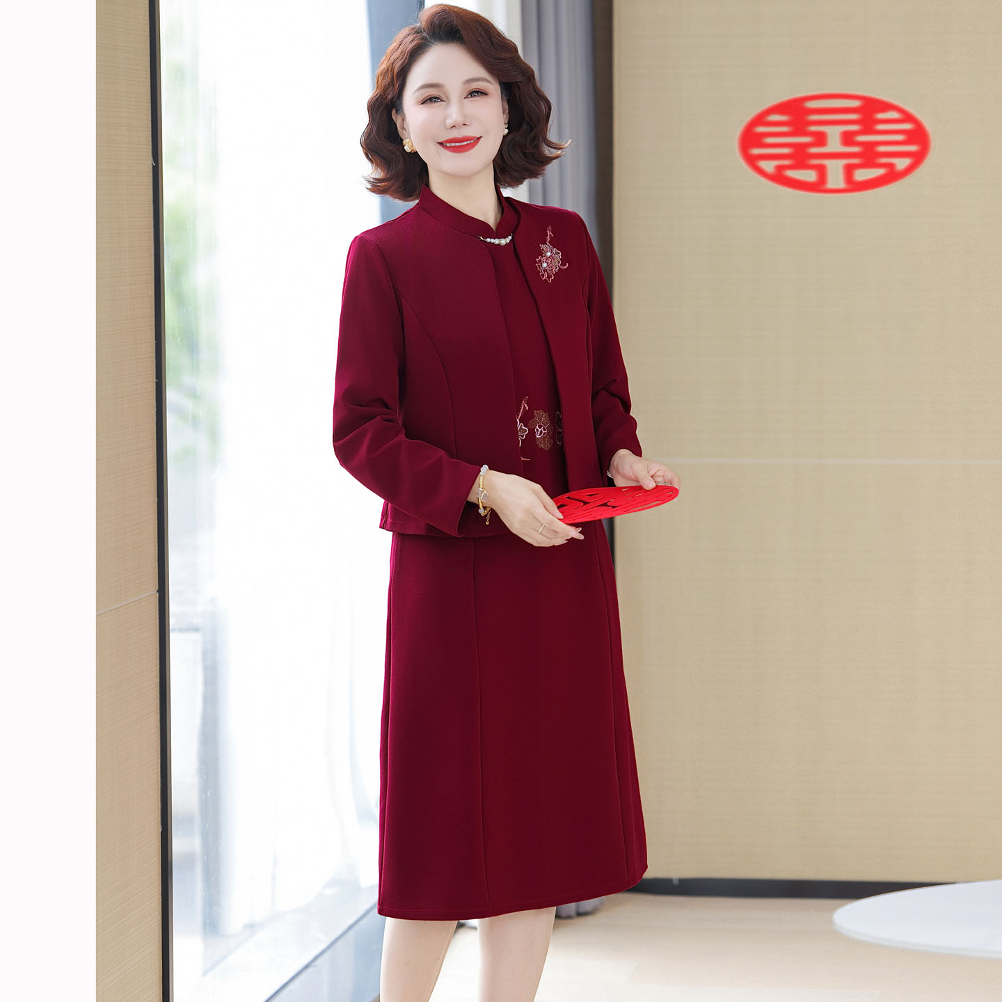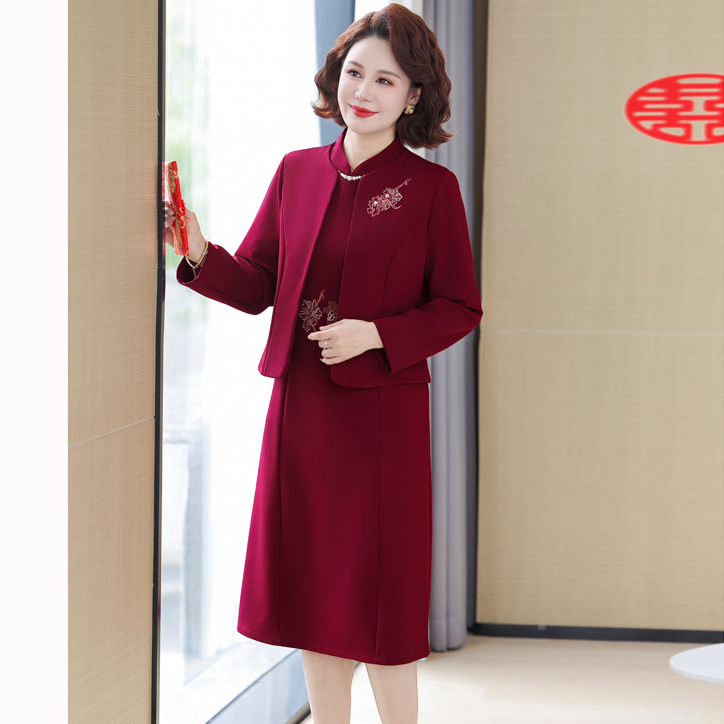新款 两件套装 中老年女喜服喜婆婆结婚礼服 春秋冬季 高贵妈妈婚宴装