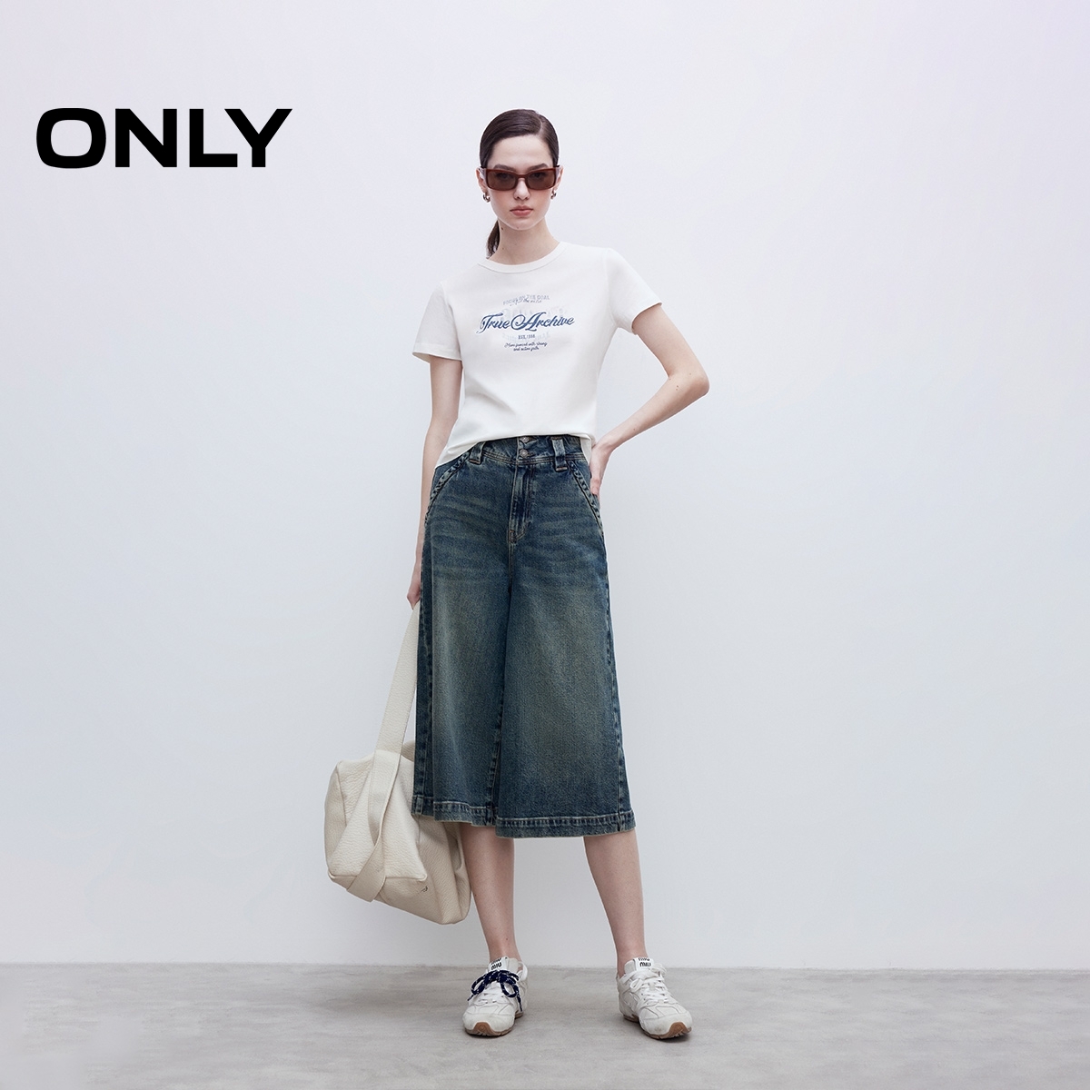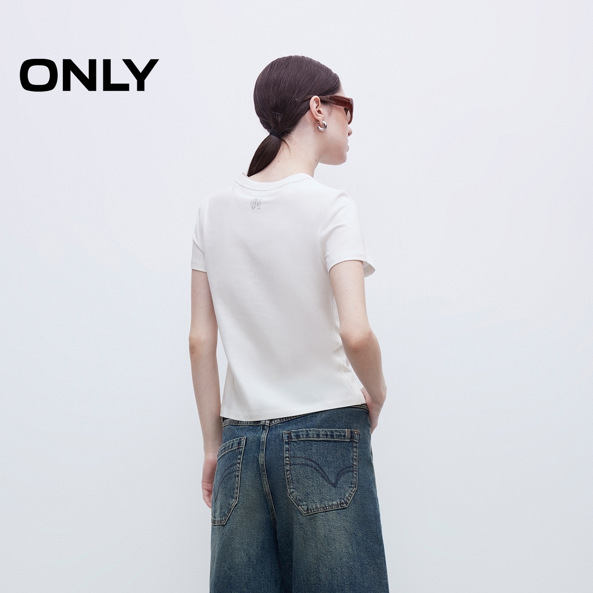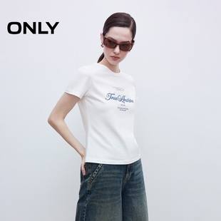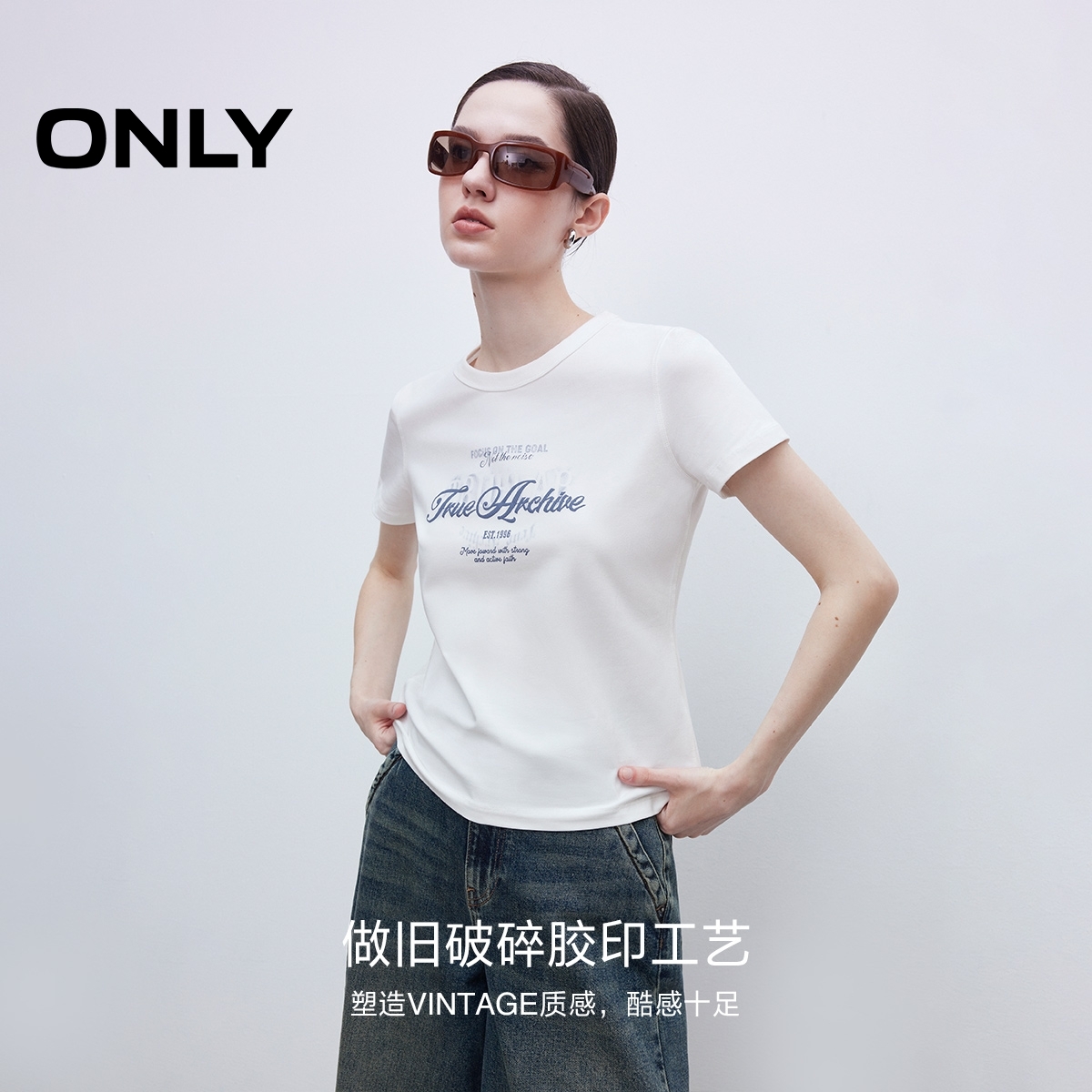 T恤女 复古破碎胶印工艺镶边圆领利落正肩短袖 ONLY2025秋季 新款