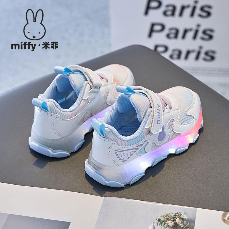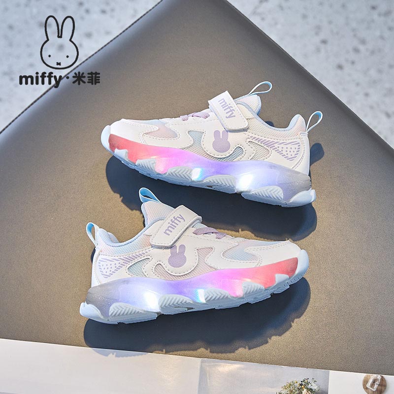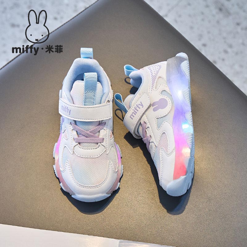 春秋女童魔术贴运动鞋 发光潮鞋 灯鞋 休闲宝宝鞋 时尚 Miffy米菲童鞋