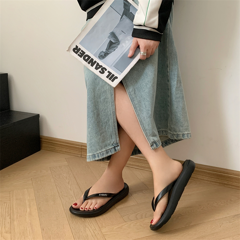 人字拖女士夏季 外穿黑色防滑浴室沙滩海边游泳厚底夹趾夹脚凉拖鞋