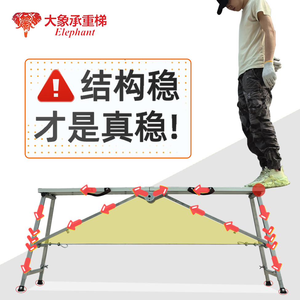 大象马凳折叠升降加厚铝合金刮腻子室内装 修梯脚手架子马镫承重梯